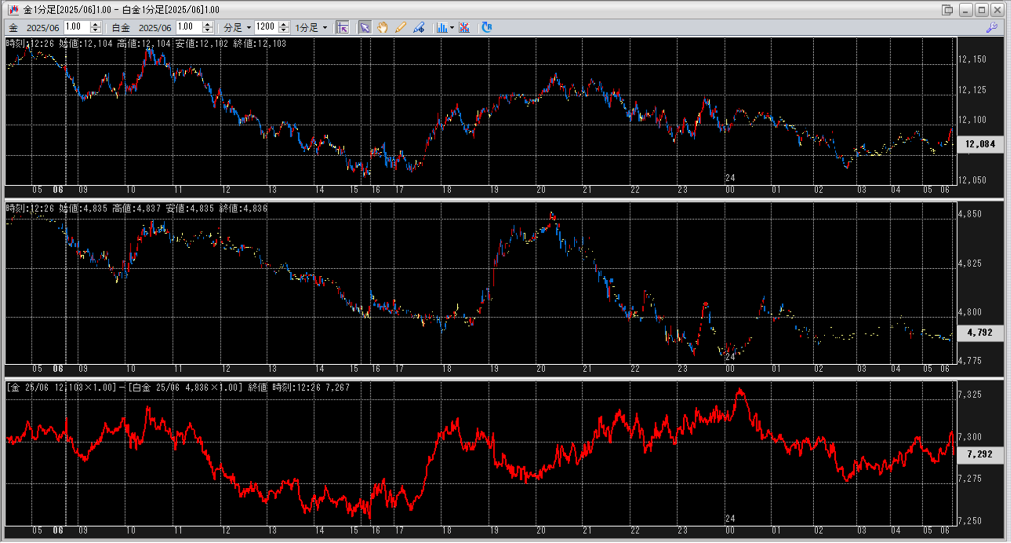 下:金白金鞘(金白金の価格差 = 金1グラムの価格 - 白金1グラムの価格)