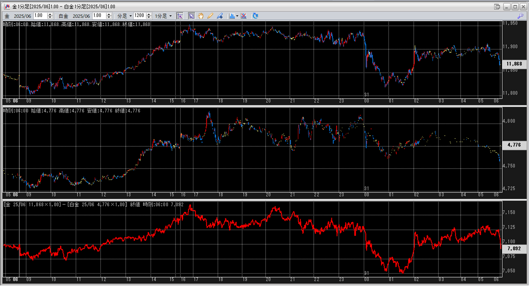 上:大阪取引所 金 2025年6月限 1分足