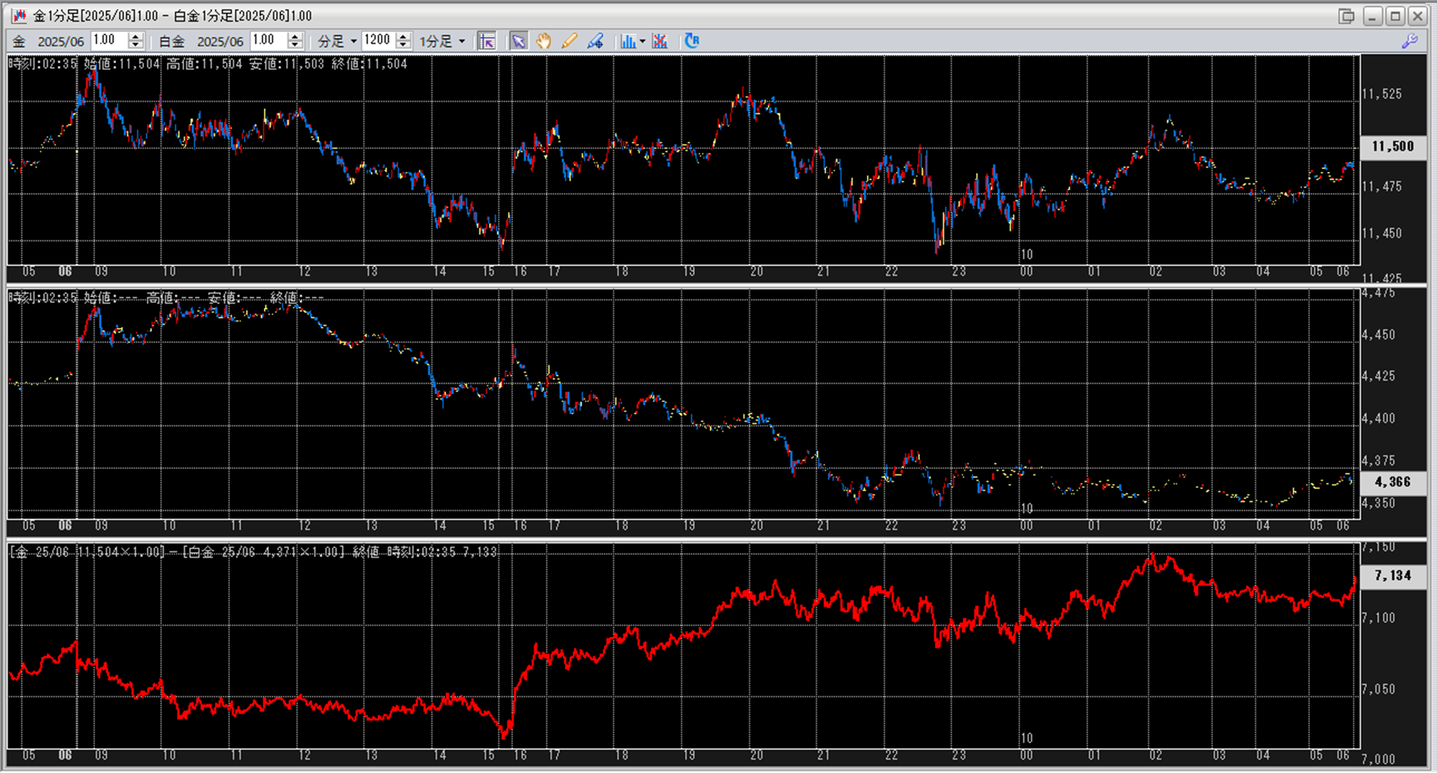 上:大阪取引所 金 2025年6月限 1分足
