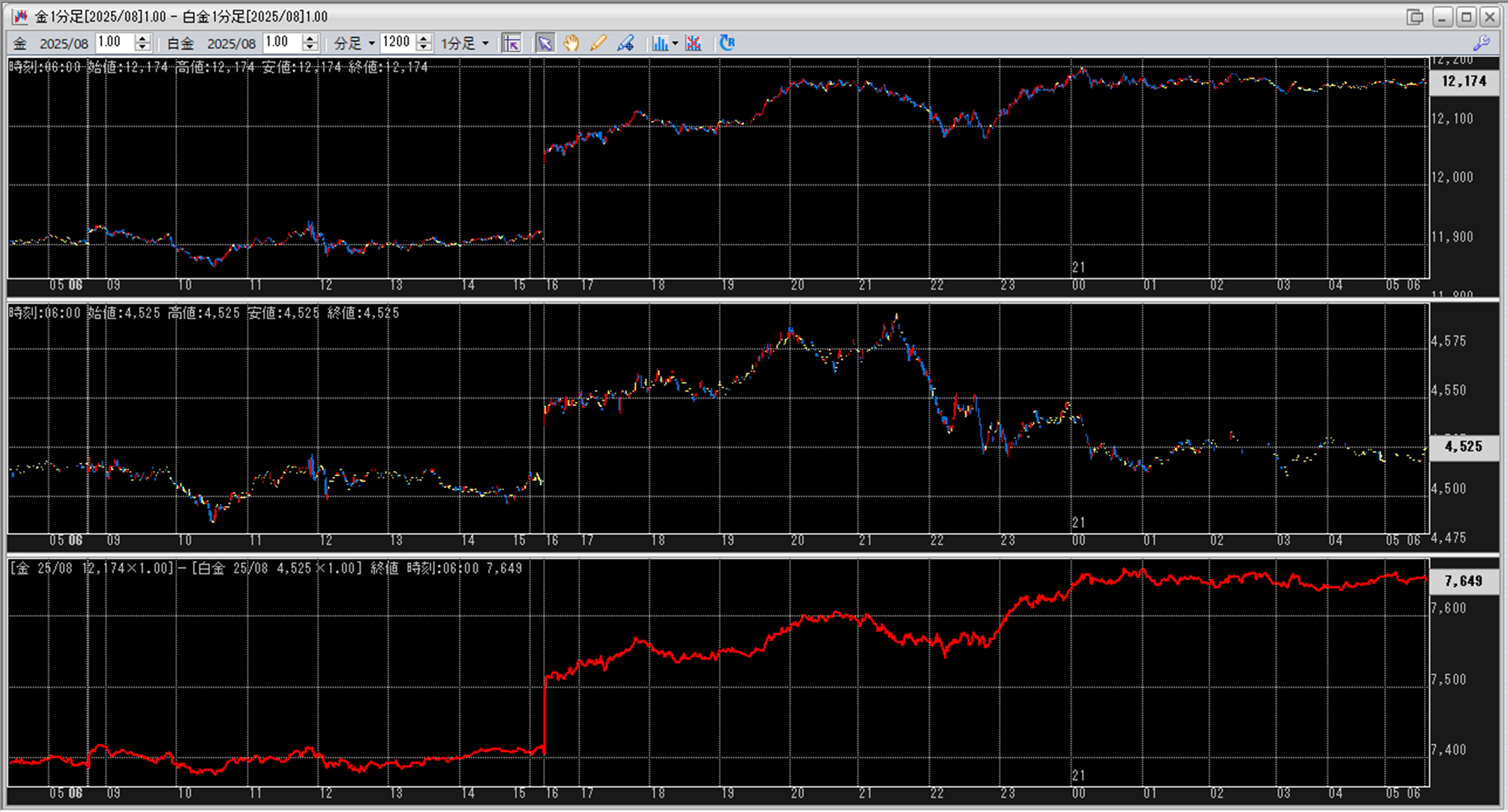 下:金白金鞘(金白金の価格差 = 金1グラムの価格 - 白金1グラムの価格)