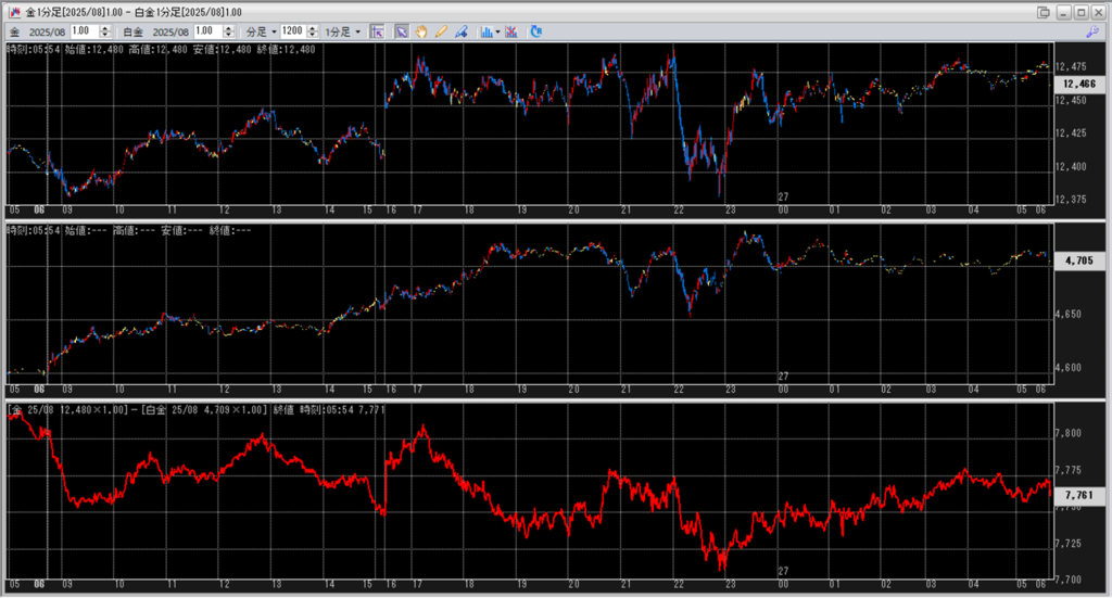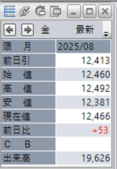 上:大阪取引所 金 2025年8月限 1分足