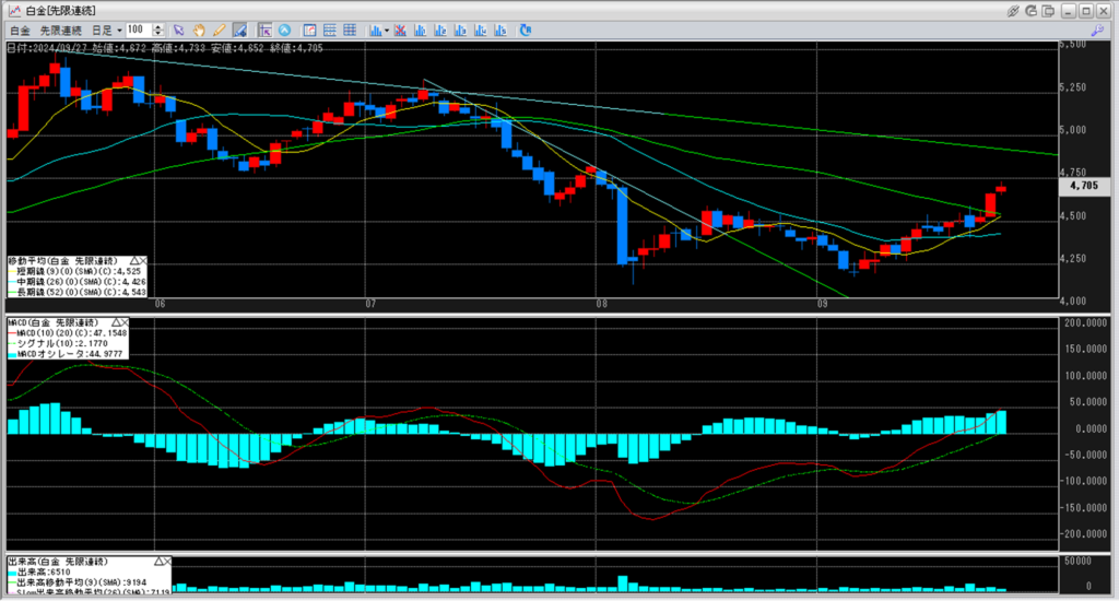 下記に金白金鞘の移動平均線のチャートを貼り付けています。