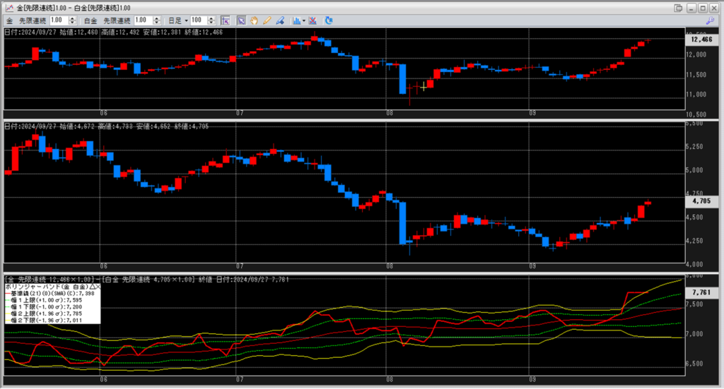 金白金の鞘をボリンジャーバンドで見ていきます。