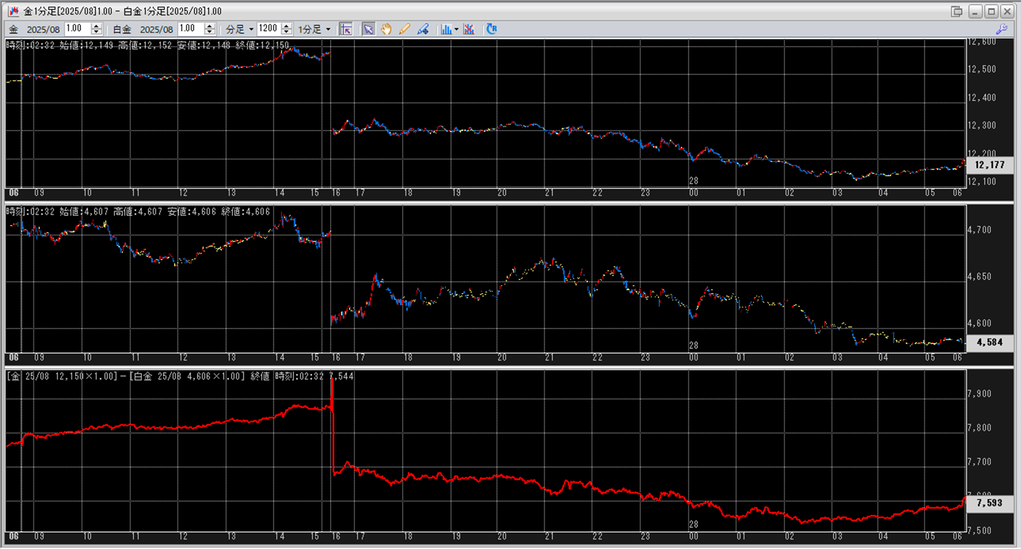 下:金白金鞘(金白金の価格差 = 金1グラムの価格 - 白金1グラムの価格)