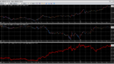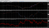 移動平均は、短期線は上向き、中期線は横向き、長期線は下向きになっています。