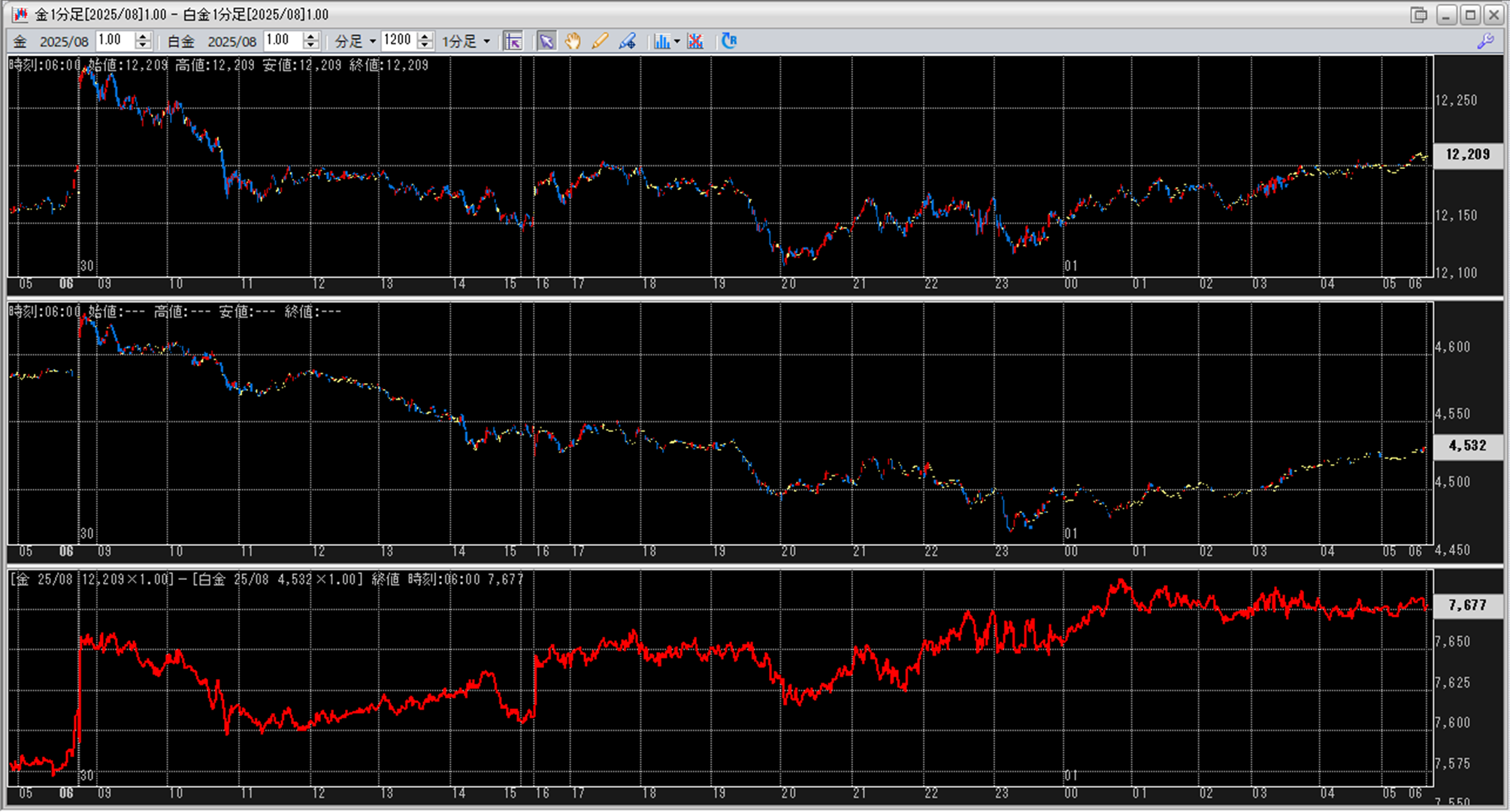 上:大阪取引所 金 2025年8月限 1分足