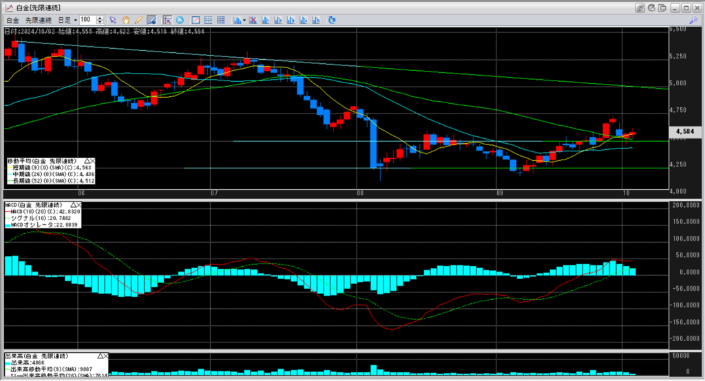下記に金白金鞘の移動平均線のチャートを貼り付けています。