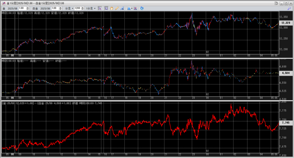 下:金白金鞘(金白金の価格差 = 金1グラムの価格 - 白金1グラムの価格)
