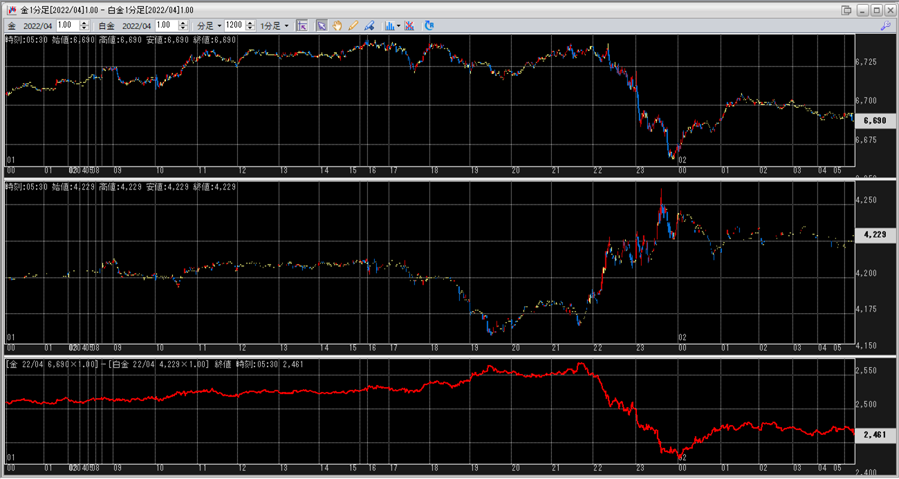 上:大阪取引所 金 2022年4月限 1分足