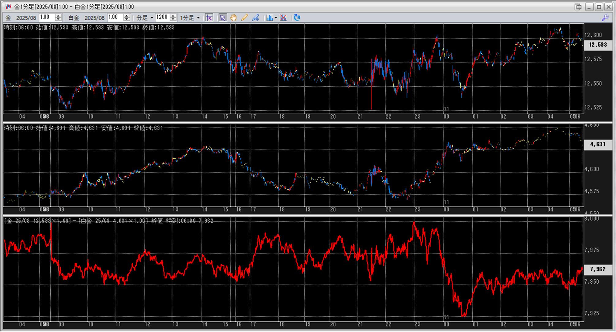 上:大阪取引所 金 2025年8月限 1分足