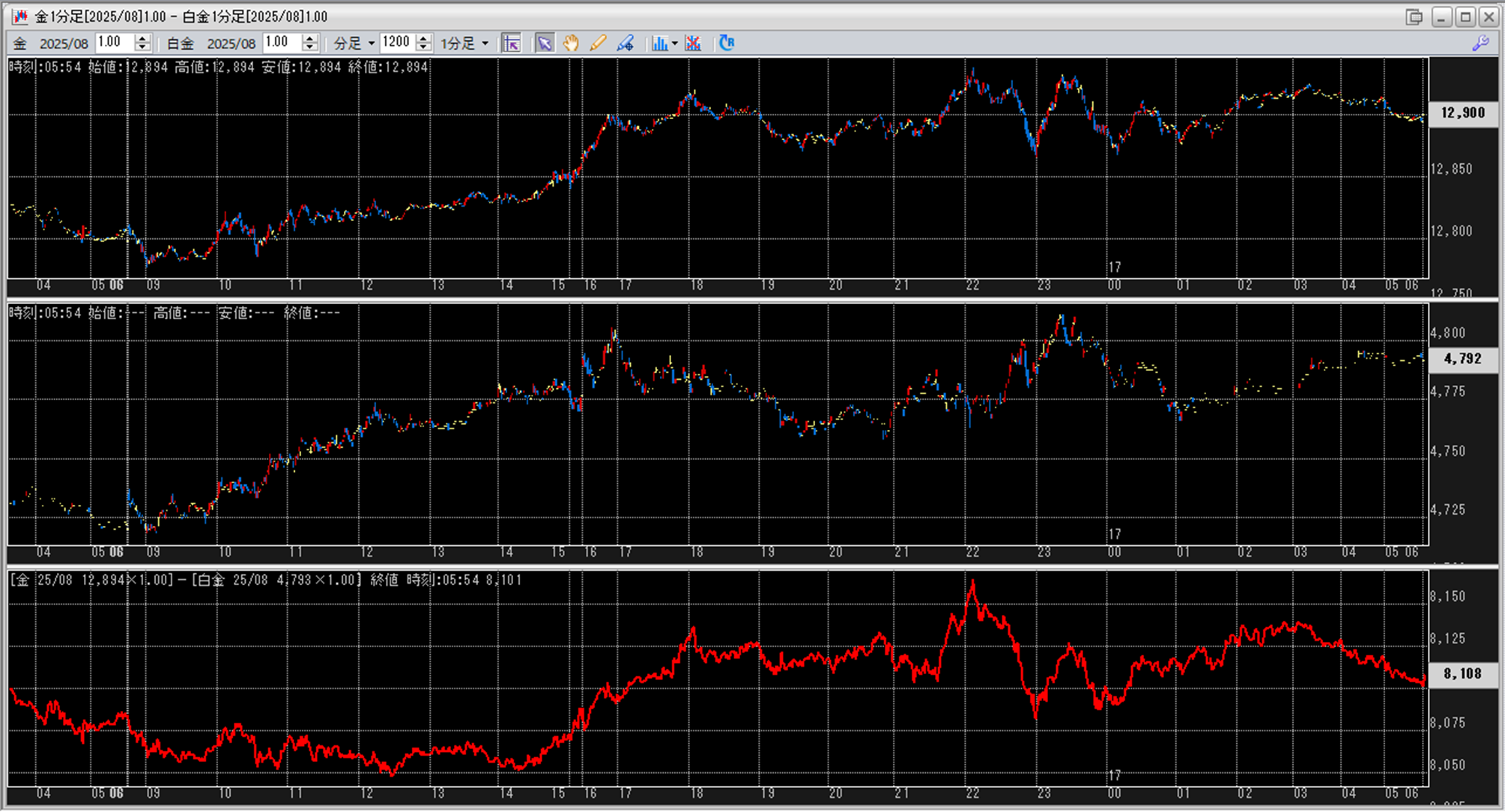 下:金白金鞘(金白金の価格差 = 金1グラムの価格 - 白金1グラムの価格)