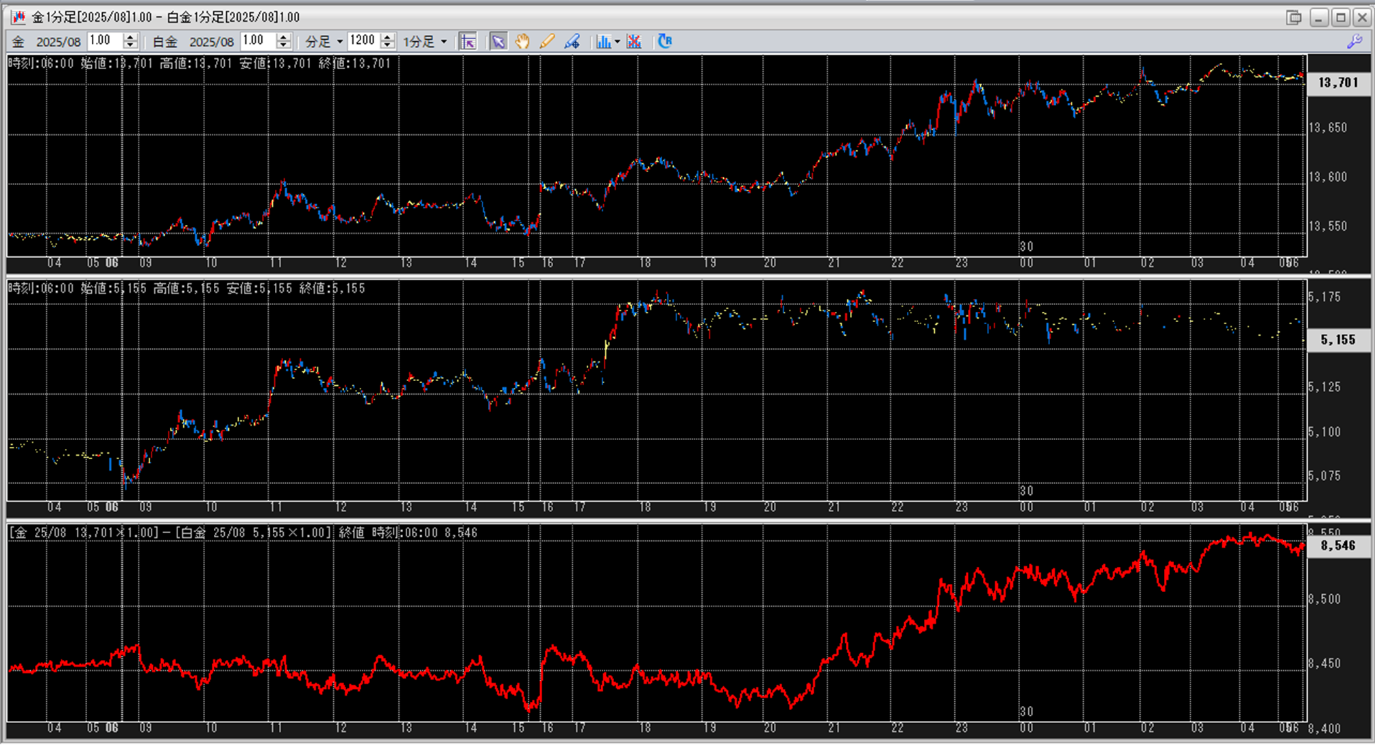 金白金鞘値動きのチャートを張り付けています。