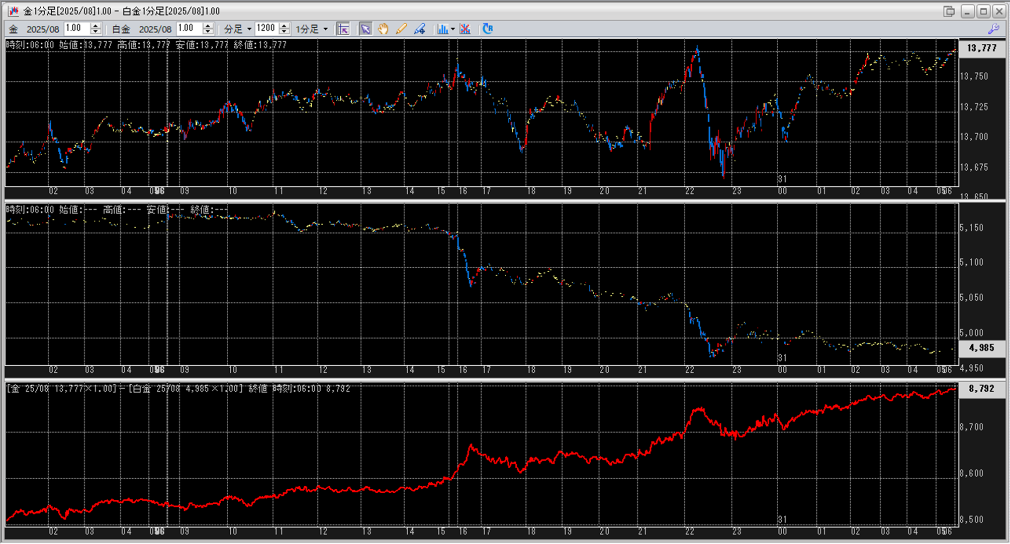 金白金鞘の史上最大値を8,793円と更新してきています。