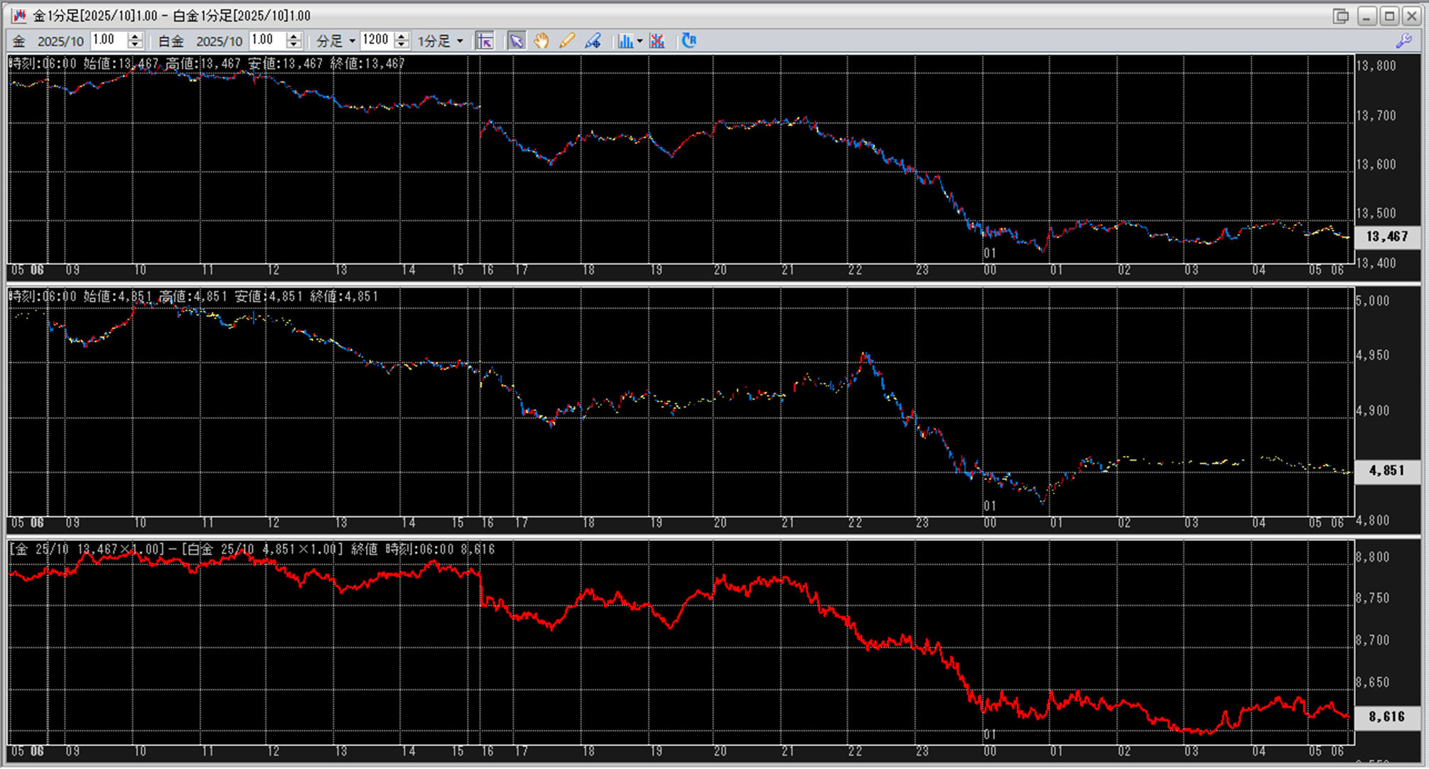 上:大阪取引所 金 2025年10月限 1分足