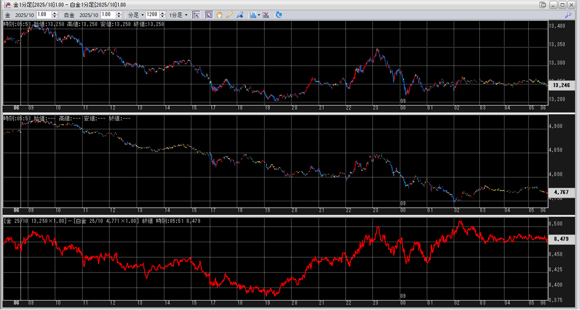 上:大阪取引所 金 2025年10月限 1分足