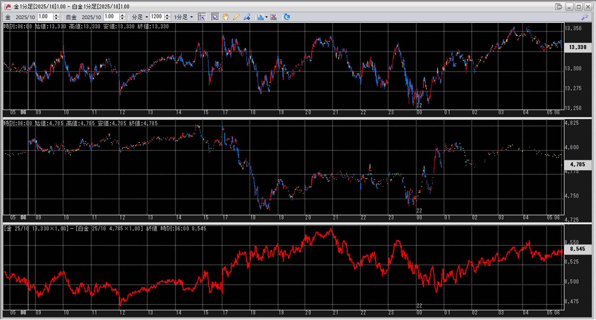 併せて、鞘拡大の仕掛け金買い1枚-白金売り2枚を1組と