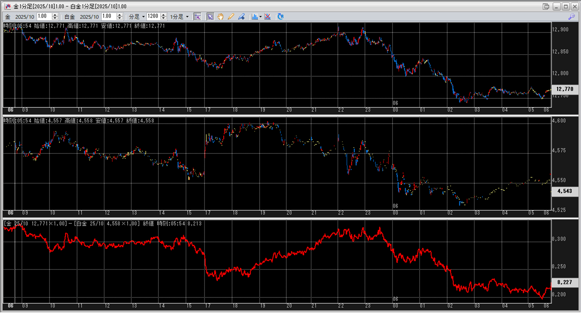 上:大阪取引所 金 2025年10月限 1分足