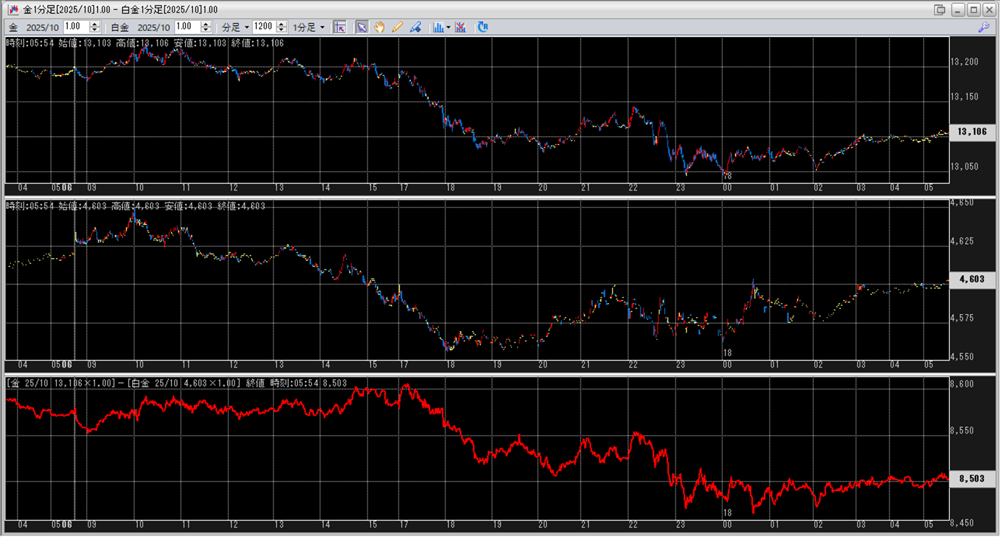 中:大阪取引所 白金 2025年10月限 1分足