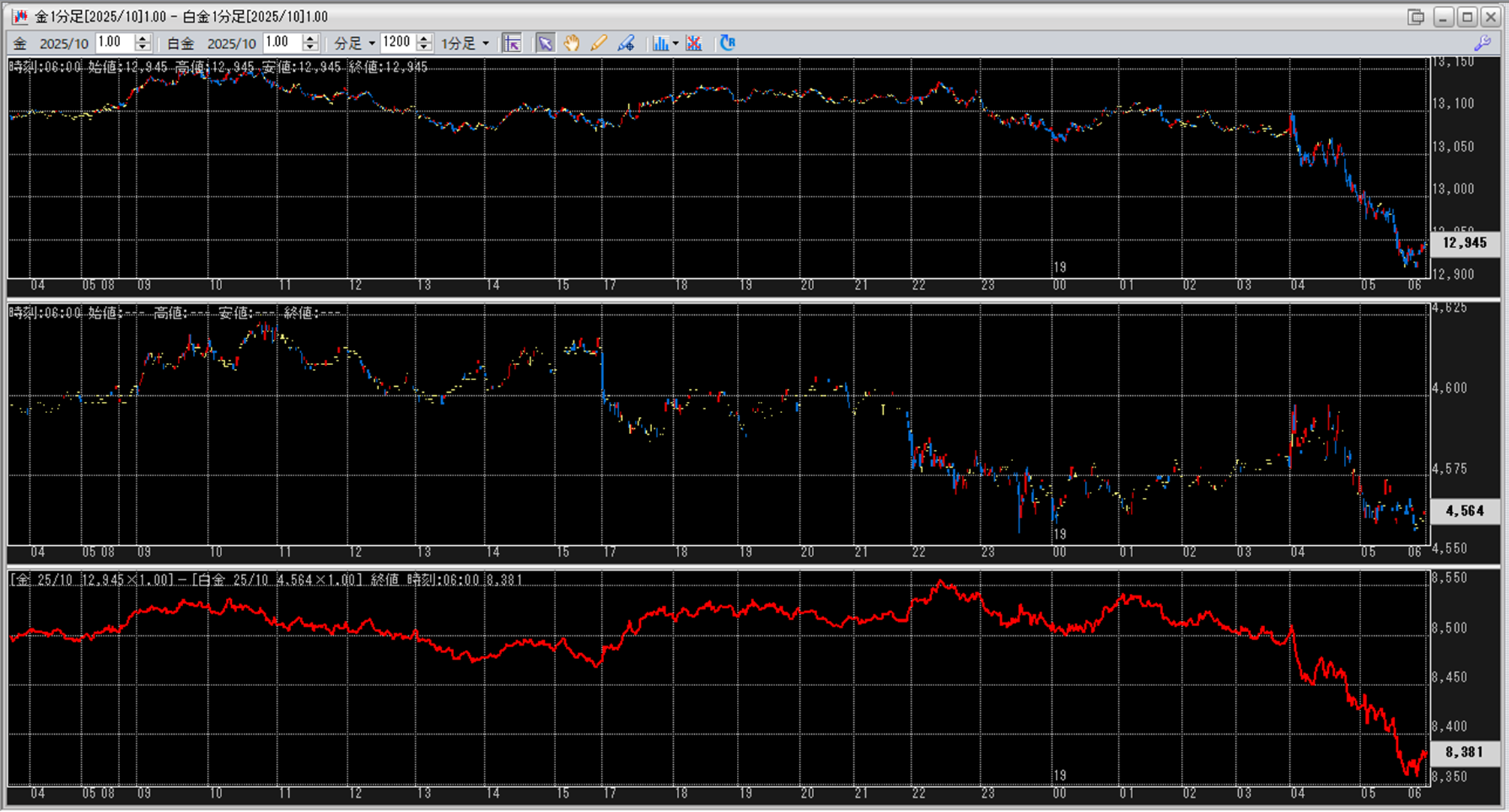 上:大阪取引所 金 2025年10月限 1分足
