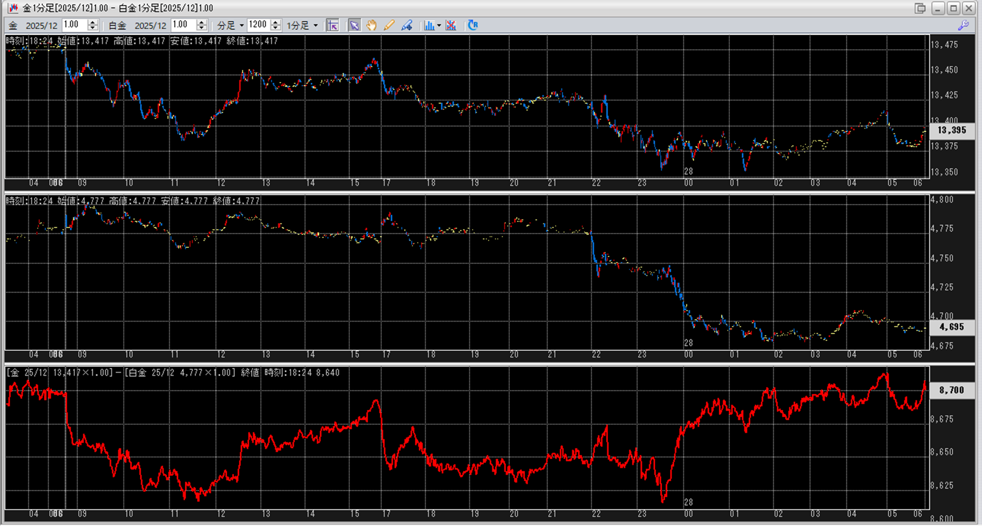 金白金鞘のチャートは、上値を更新することが出来ず、鞘縮小していましたが、