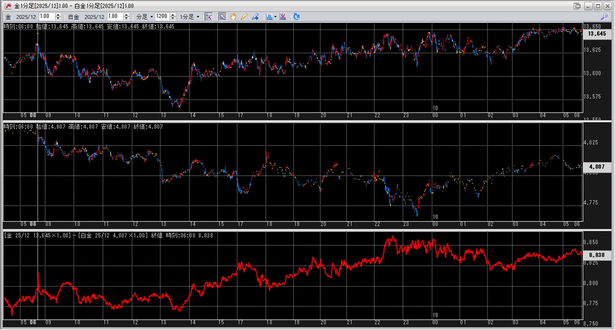 金白金鞘のチャートは、鞘拡大し、上値を更新してきています。