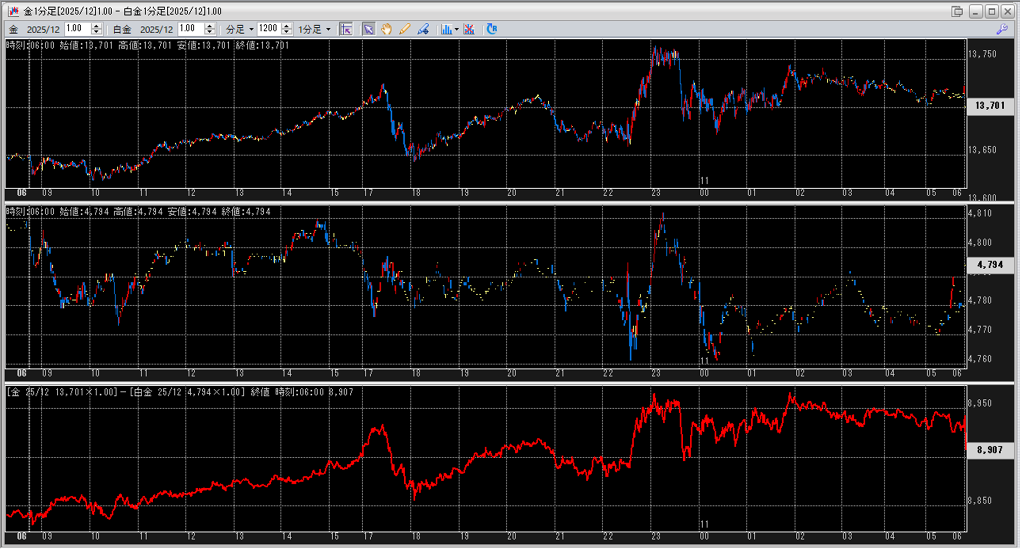 上:大阪取引所 金 2025年12月限 1分足
