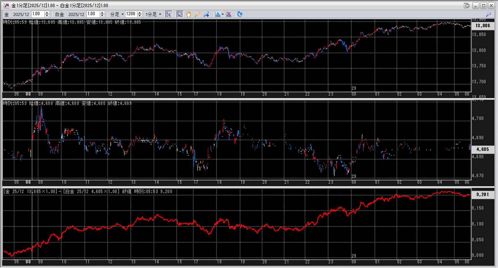 下:金白金鞘(金白金の価格差 = 金1グラムの価格 - 白金1グラムの価格)