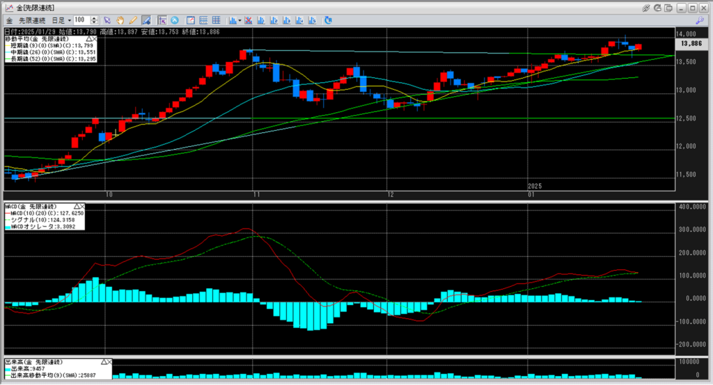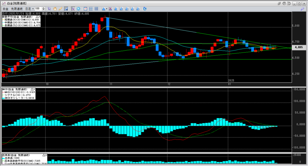 下記に金白金鞘の移動平均線のチャートを貼り付けています。
