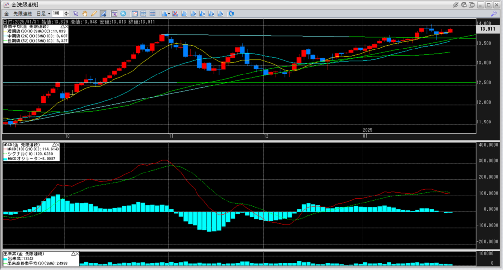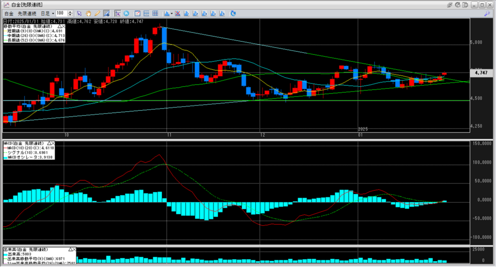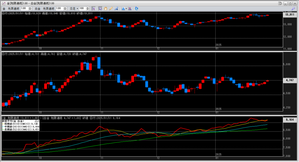 下記に金白金鞘の移動平均線のチャートを貼り付けています。