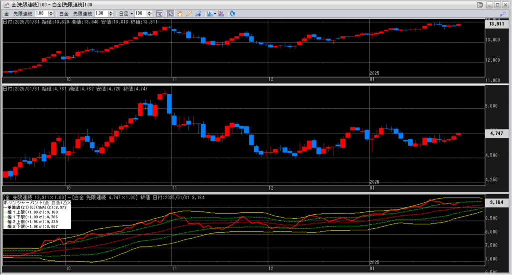 金白金の鞘をボリンジャーバンドで見ていきます。