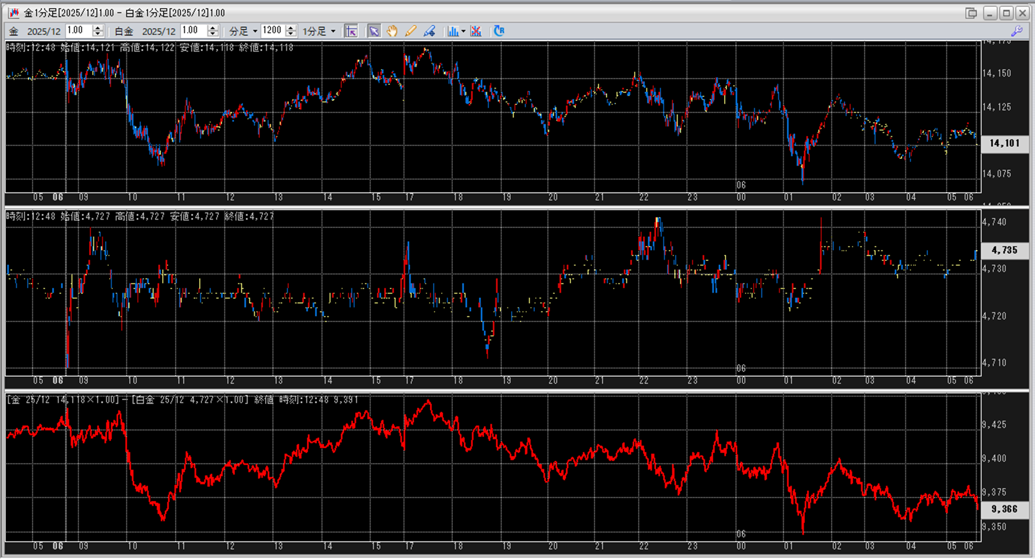 金白金鞘のチャートは鞘拡大が続いてきましたが、本日は鞘縮小しています。