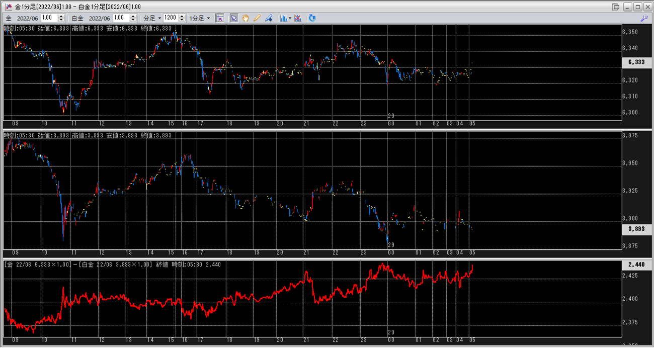 上:大阪取引所 金 2022年6月限 1分足