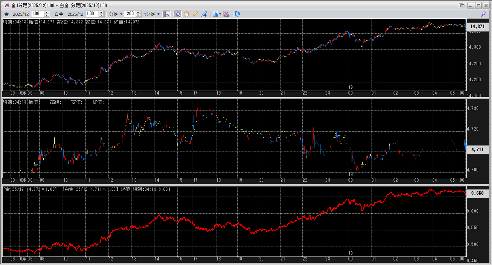 金白金鞘のチャートは傾向としては鞘拡大してきており、
