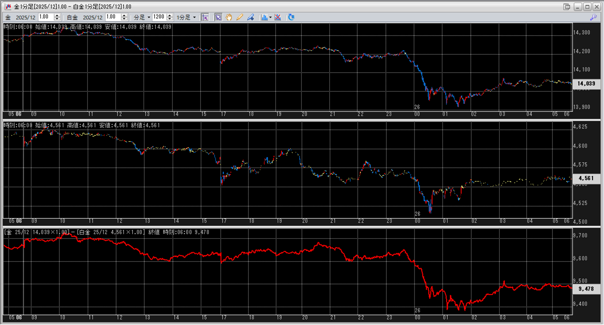 上:大阪取引所 金 2025年12月限 1分足