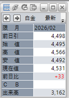 中:大阪取引所 白金 2026年2月限 1分足