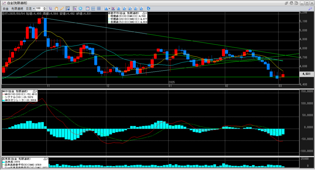 このまま白金価格は4,500円割れが底値となり、上がっていくのか。