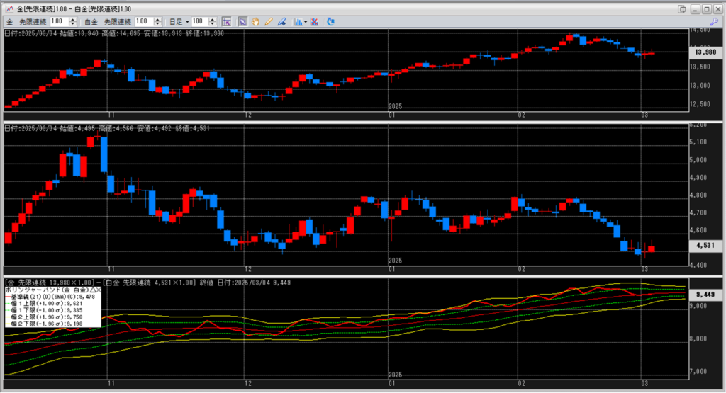 金白金の鞘をボリンジャーバンドで見ていきます。
