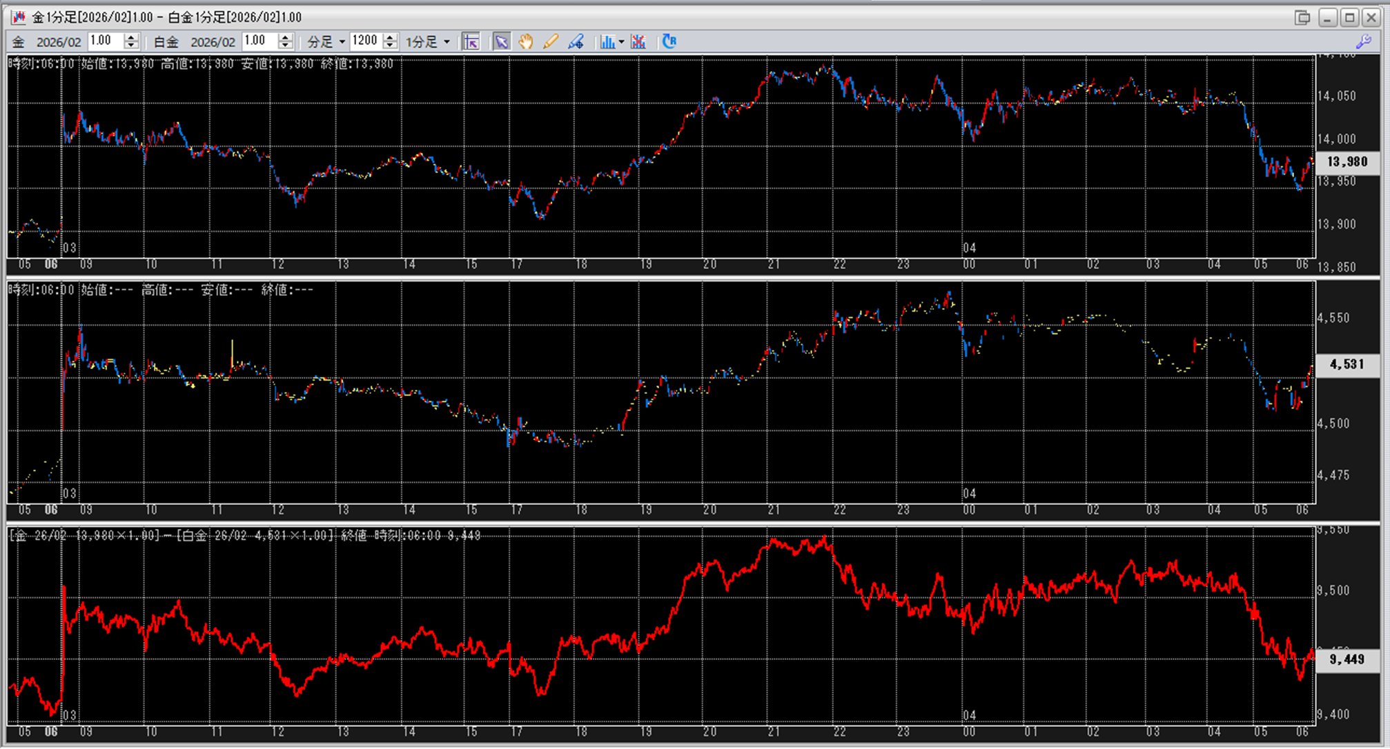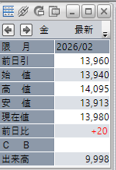 上:大阪取引所 金 2026年2月限 1分足