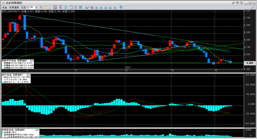 金白金鞘のチャートは、右肩上がりのチャートが崩れてきています。