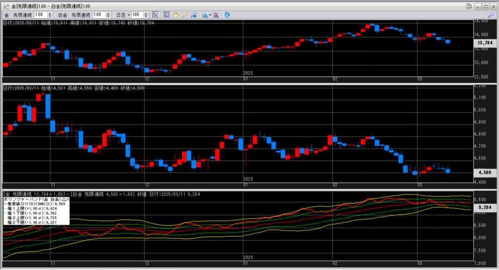 金白金の鞘をボリンジャーバンドで見ていきます。