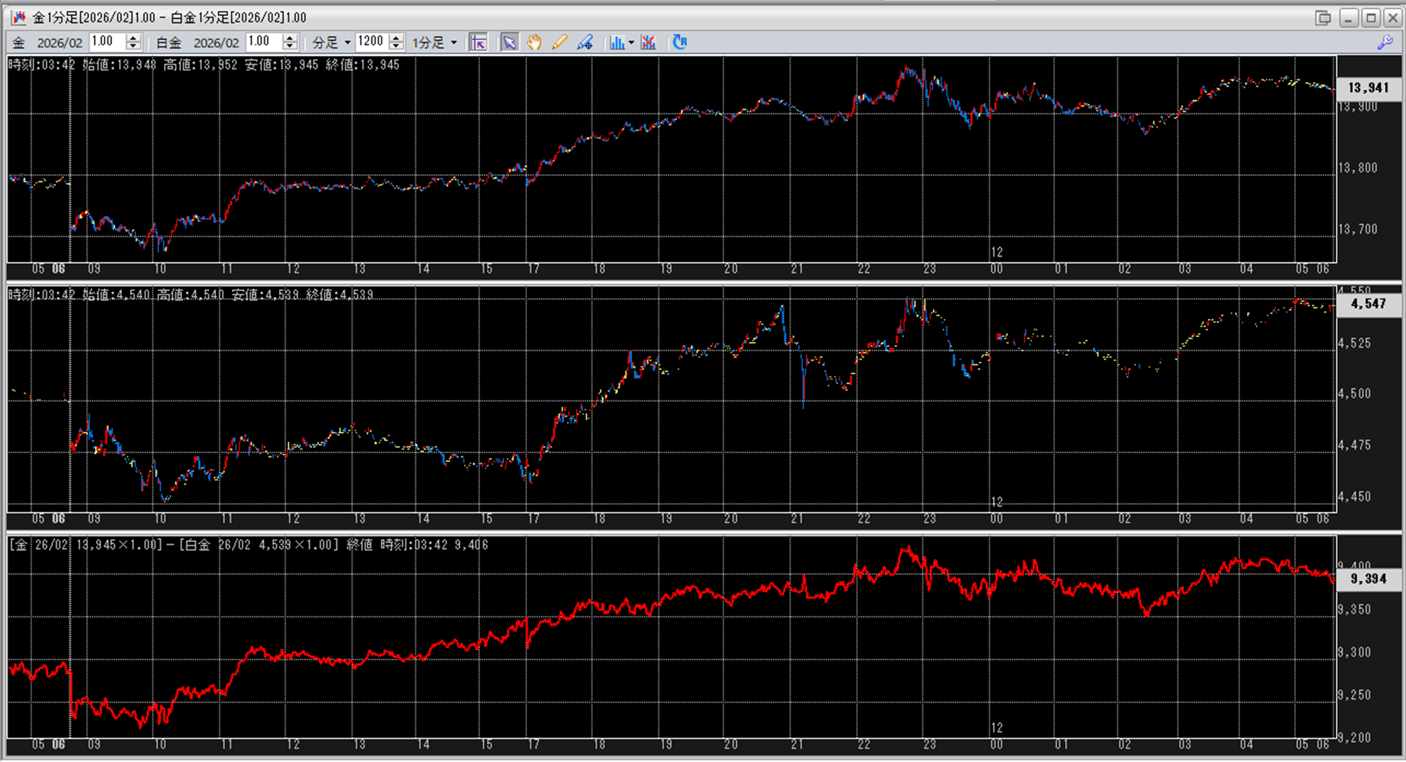 中:大阪取引所 白金 2026年2月限 1分足
