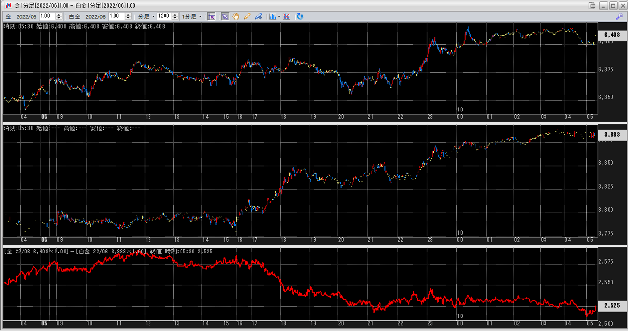 上:大阪取引所 金 2022年6月限 1分足