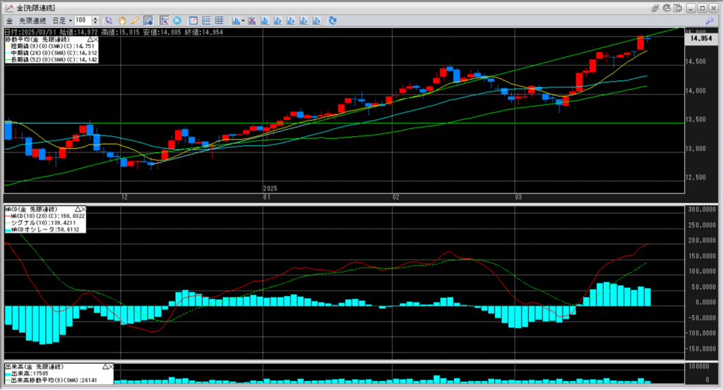 金白金鞘の史上最大値は10,359円と更新してきています。