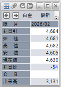 そこから白金価格は4,600円を少し割るところまで値段を下げた後、