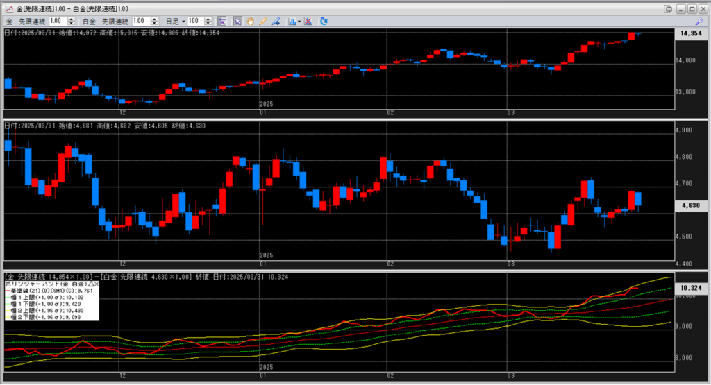 金白金の鞘をボリンジャーバンドで見ていきます。