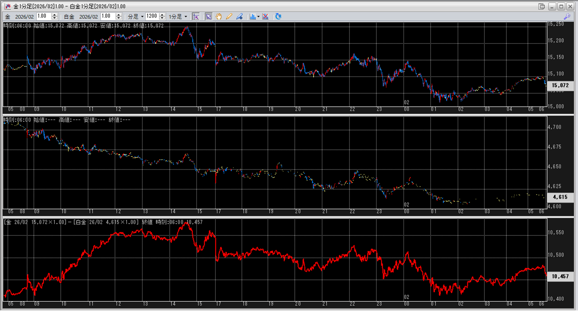 下:金白金鞘(金白金の価格差 = 金1グラムの価格 - 白金1グラムの価格)