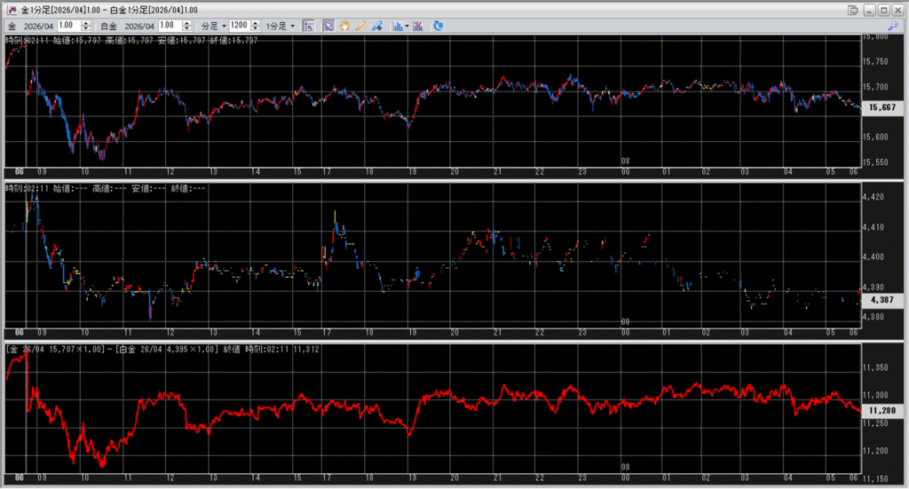 チャートを見ると、まだ金白金鞘は拡大傾向のように見えます。