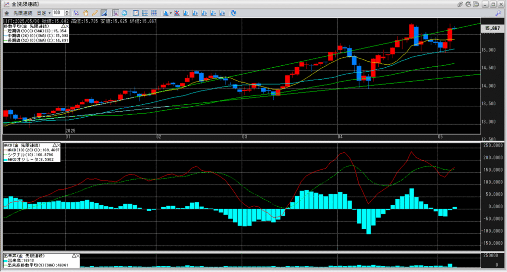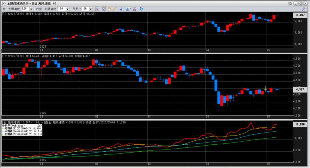 下記に金白金鞘の移動平均線のチャートを貼り付けています。