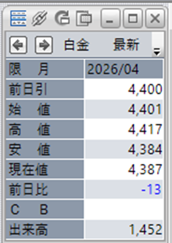 4,400円まで値段を上げた後、白金価格は下がっています。