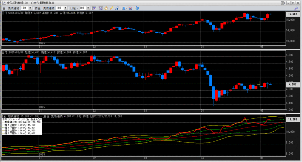 金白金の鞘をボリンジャーバンドで見ていきます。